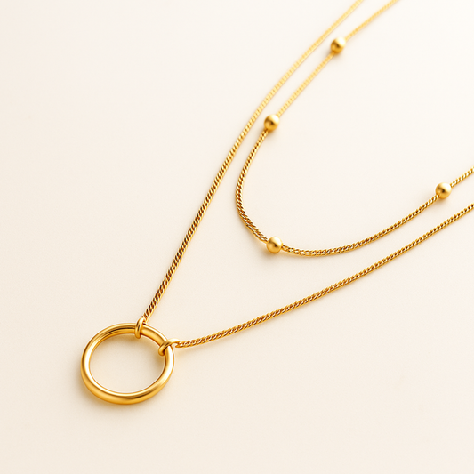 Lyandra | Gold Plated Double Layered Circular Pendant Necklace