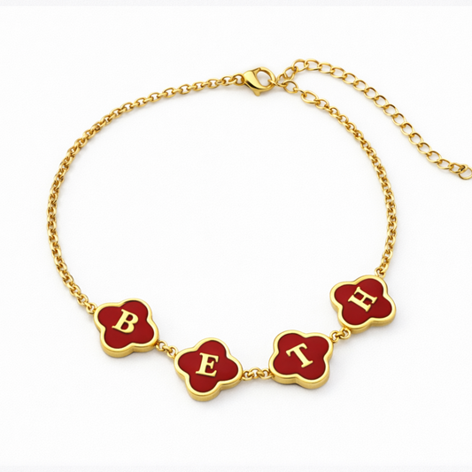 Valentina Clover Bracelet - Personalised Red Clover Name Bracelet