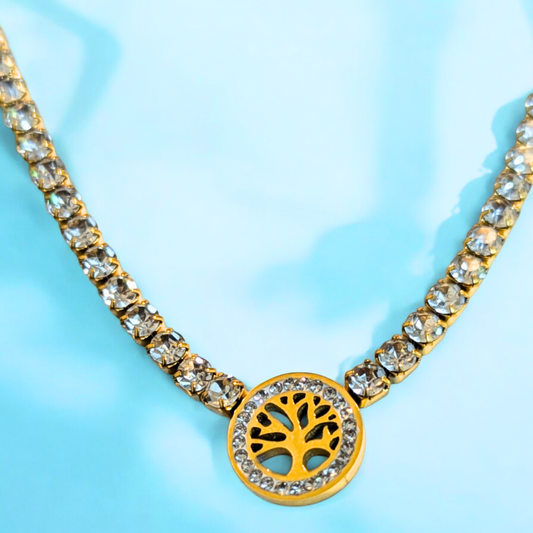 Cambria | Gold Plated Tree of Life Waterproof Tennis Necklace with Zircons