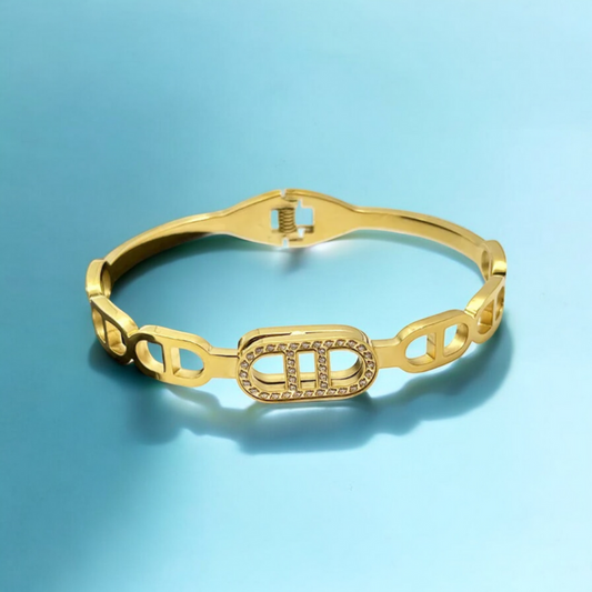 Mida | Gold Plated Circular Zircon Cuff Bracelet Bangle