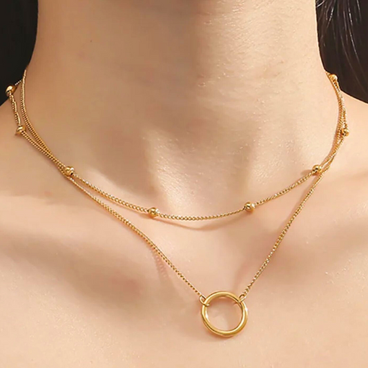 Lyandra | Gold Plated Double Layered Circular Pendant Waterproof Necklace