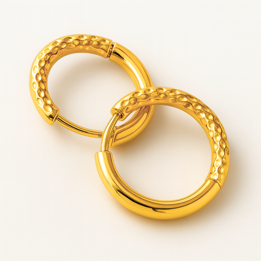 Alessia | 18K Gold Plated Hammered Texture Hoop Waterproof Earrings
