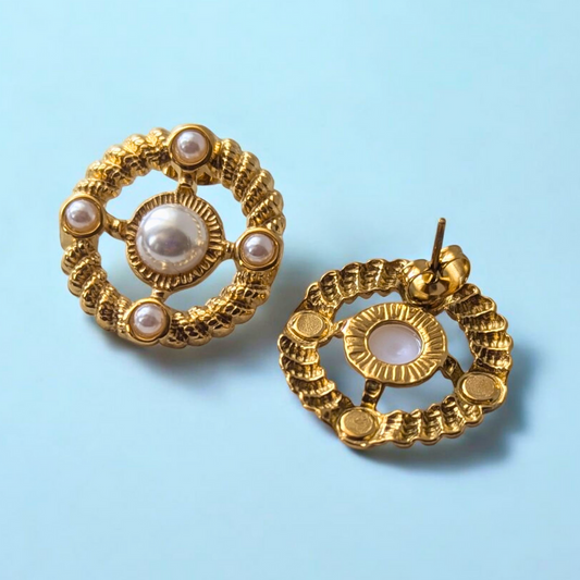 Lira | Gold (18K) Plated Chunky Waterproof Stud Earrings with Pearls