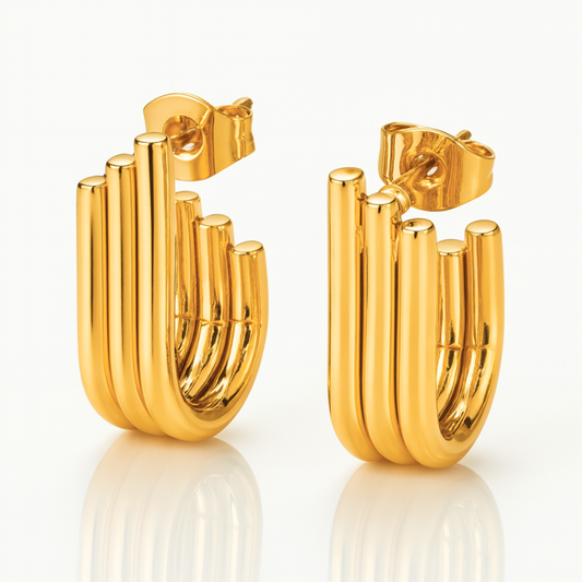 Rosara | 18K Gold Plated Triple Hoop Pipe Hoop Waterproof Earrings