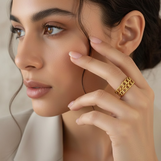 Georgina | Gold Plated Double Layered Braided Chain Resizable Ring
