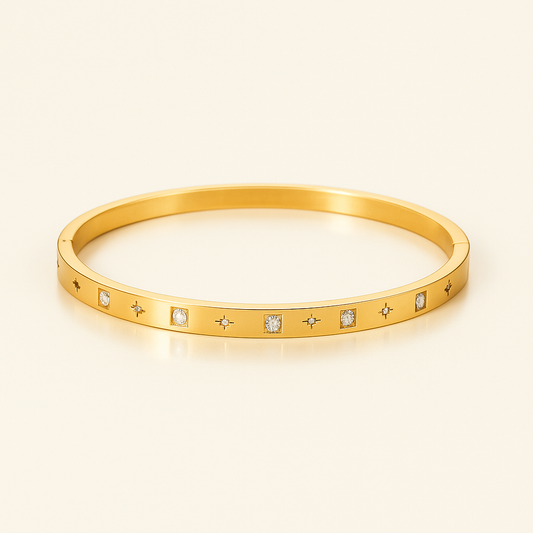 Helena | Gold Plated Cuff Bangle Bracelet with Star Shaped Zircons
