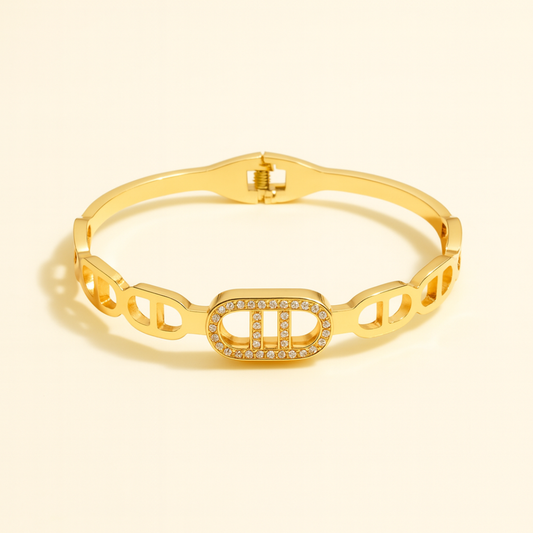 Vida | V-Cut Gold Plated Bracelet Bangle with Zircons