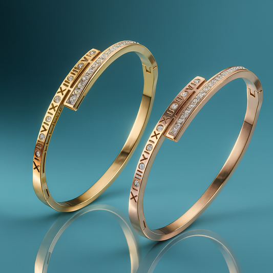 Clarissa | Gold Plated Roman Numeral Crystal Cuff Bracelet Bangle