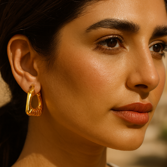 Nadine | 18K Gold Plated Square Bamboo Hoop Waterproof Earrings