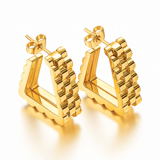 Livia | 18K Gold and Tri-Color Plated Triangle Geometric Waterproof Earrings