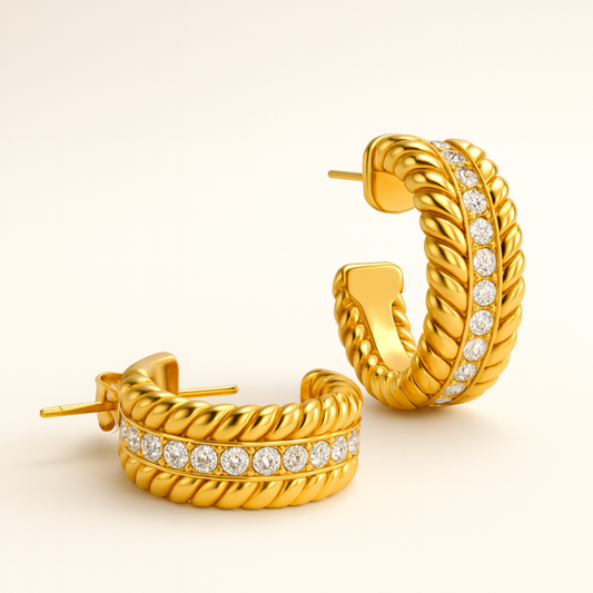 Brielle | Gold (18K) Plated C-Shaped Waterproof Hoop Earrings with Zircons
