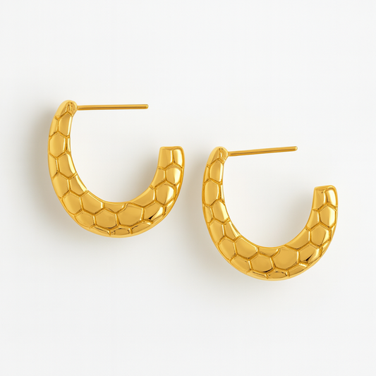 Sylvia | 18K Gold Plated French Moon Style Textured Hoop Waterproof Earrings