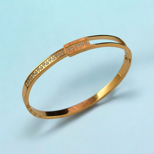 Carina | Gold-Plated Zircon Embedded Hollow Cuff Bangle