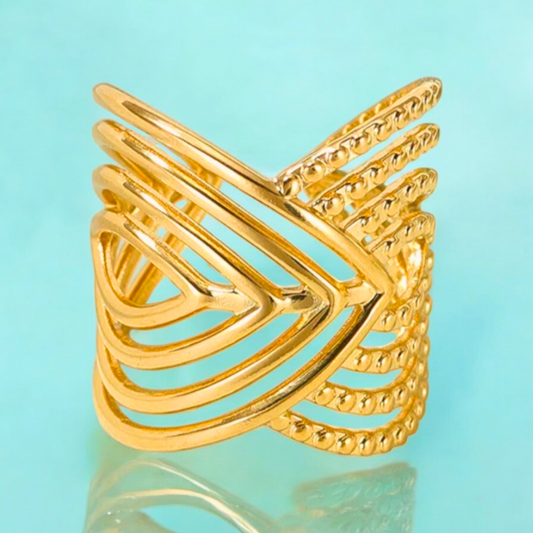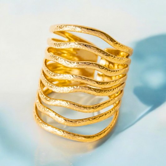 Mariza | Gold Plated Chunky Multi-Layer Wave Cuff Resizable Ring