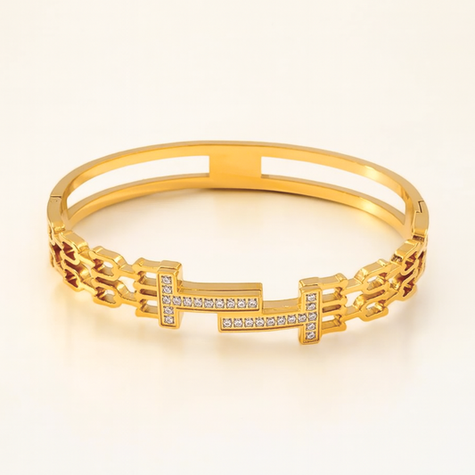 Tamara | 18K Double T Gold Plated Waterproof Bracelet Bangle with Zircons