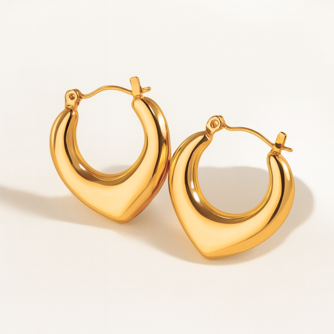 Dominique | 18K Gold Plated Irregular Heart Design Hollow Hoop Waterproof Earrings