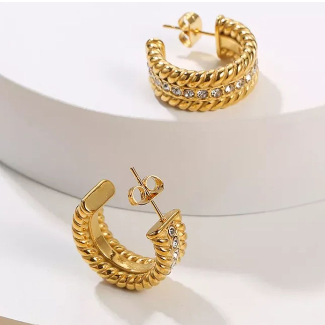 Mirra | Gold (18K) Plated C-Shaped Waterproof Hoop Earrings with Zircons
