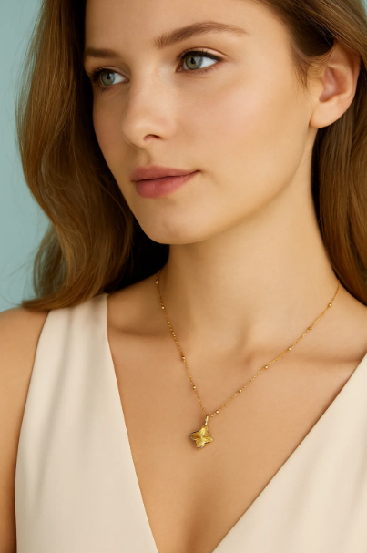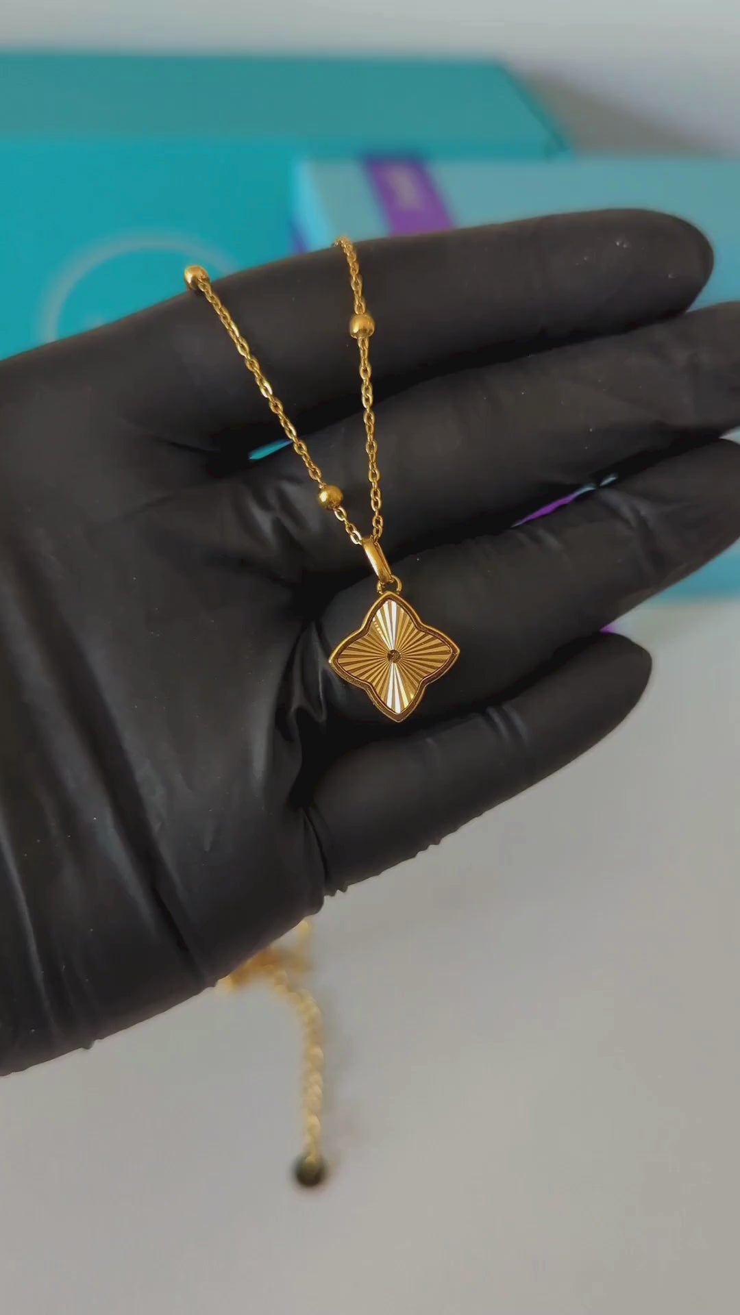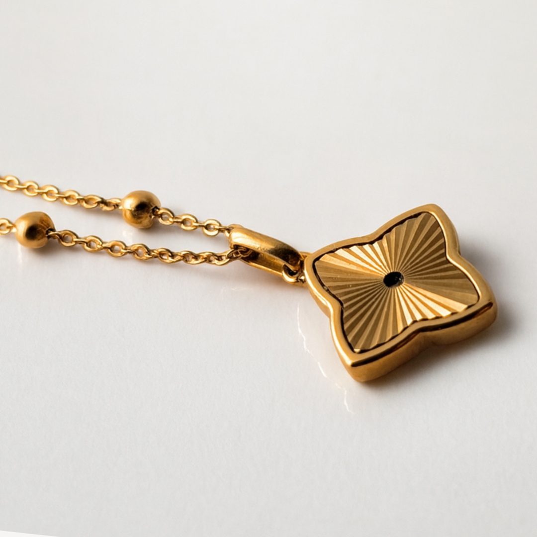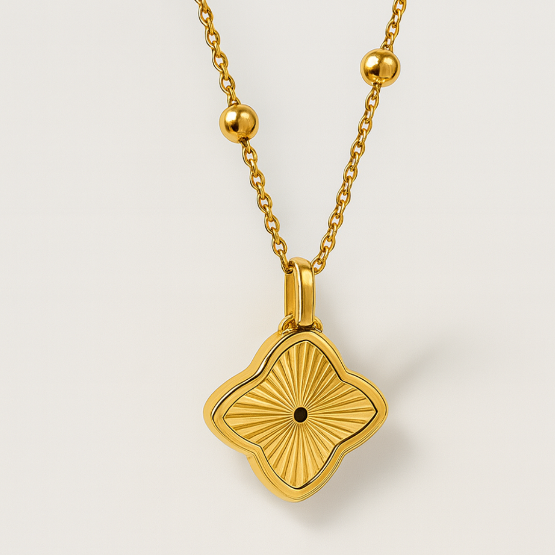 Our necklace is meticulously crafted from premium 18k gold-plated PVD stainless steel, ensuring both an opulent shine and exceptional durability. The advanced PVD (Physical Vapor Deposition) process creates a finish that is far more resilient than traditional plating, making it a true investment in affordable luxury.