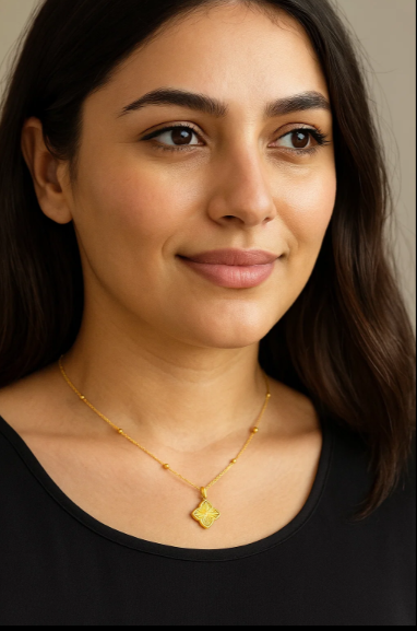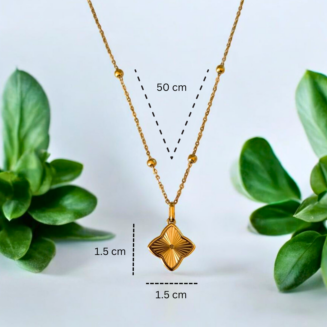 Elevate your jewellery aesthetic and embrace a touch of timeless luck with our exquisite Clover Necklace, the perfect blend of modern elegance and sophisticated design. This dainty, designer-inspired clover charm is more than just an accessory—it's a must-have statement piece, a lucky clover pendant, and a versatile addition to your collection. Its delicate, textured rosette-style clover design is a symbol of good fortune, crafted to bring a touch of luxury to your everyday look.