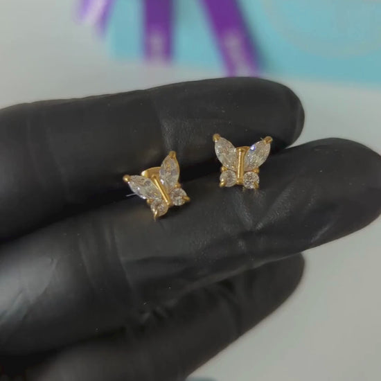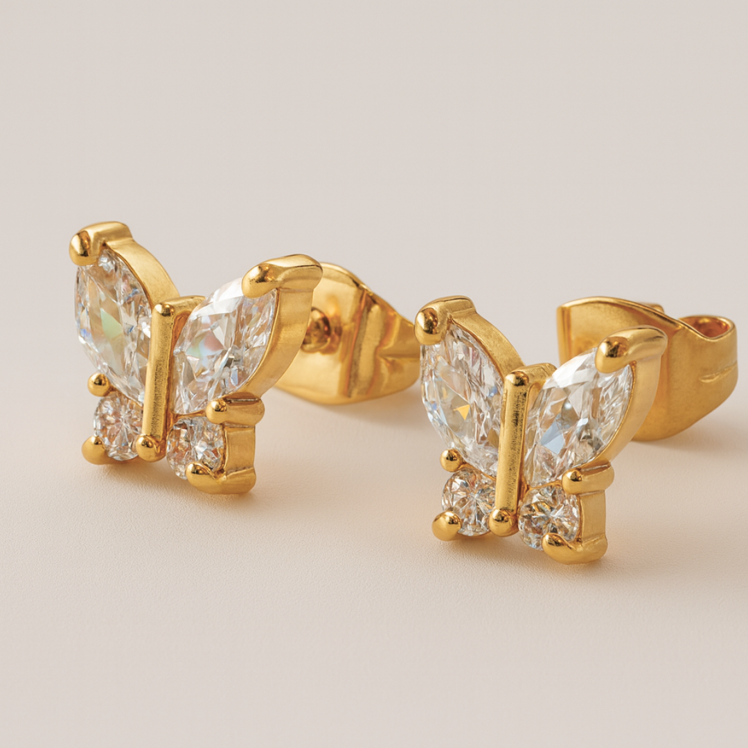 Crystal | 18K Gold-Plated Butterfly Stud Waterproof Earrings
