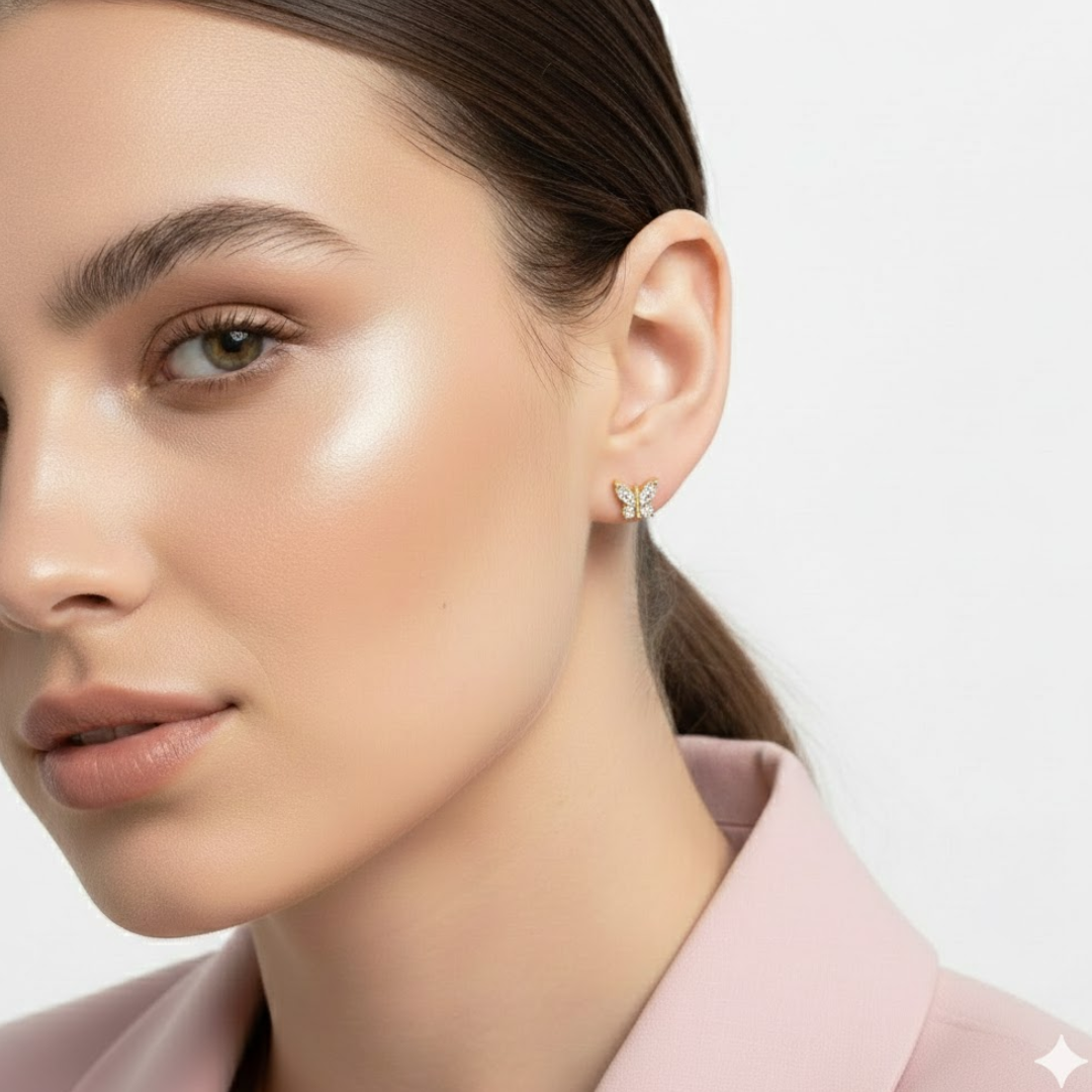 Elevate your look with our Crystal Butterfly Stud Earrings, a perfect blend of delicate charm and enduring luxury.