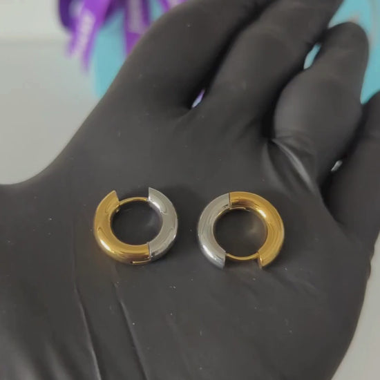 Dual Colour Design: Stylish 2 tone silver and 18k gold plated huggie hoops for everyday wear.