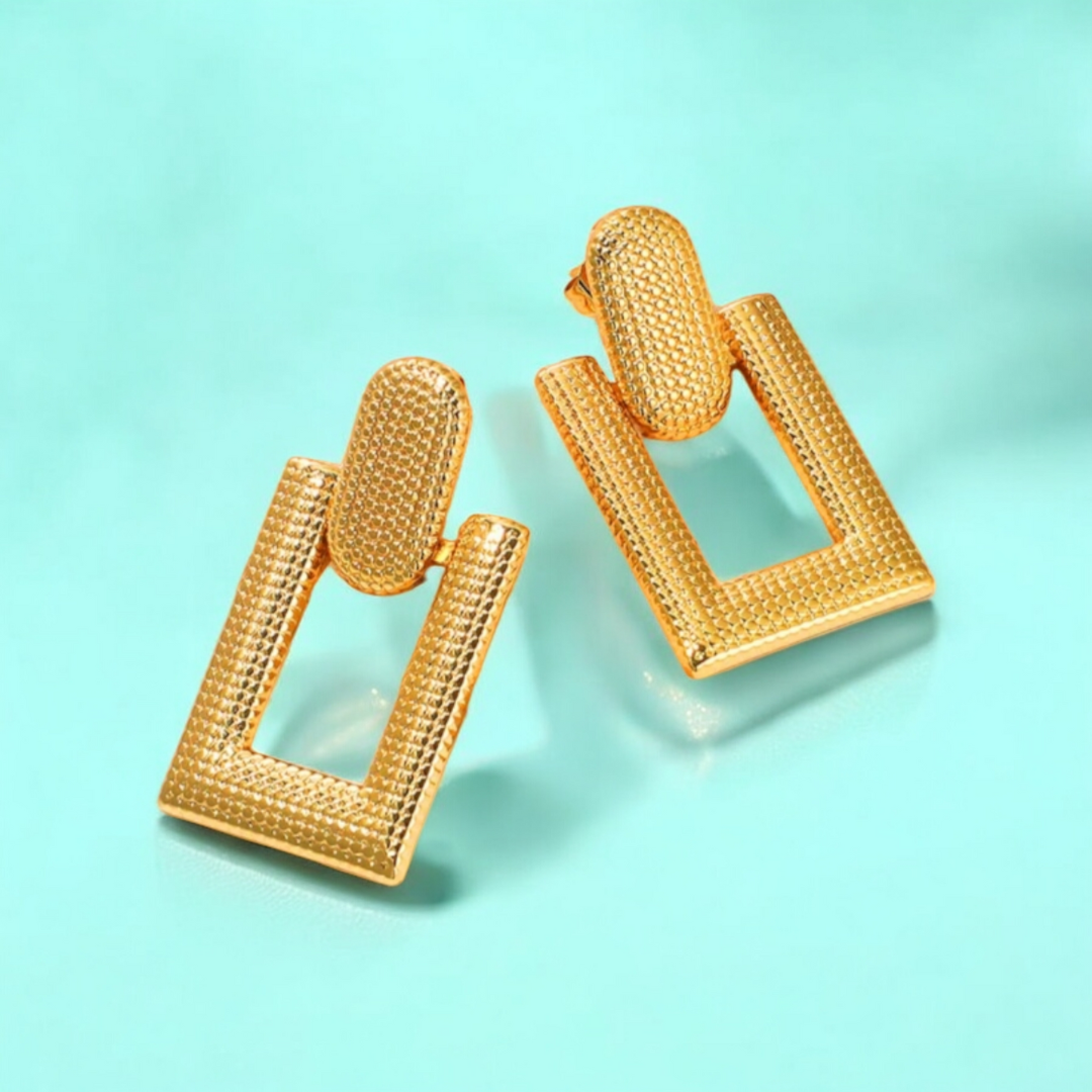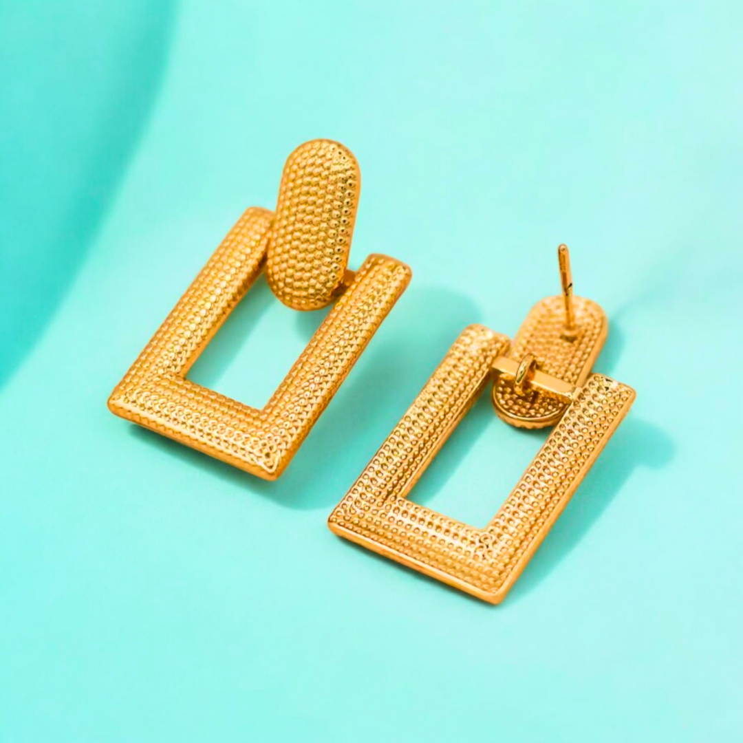 Dora | 18K Gold-Plated Rectangular Drop Hanging Waterproof Earrings