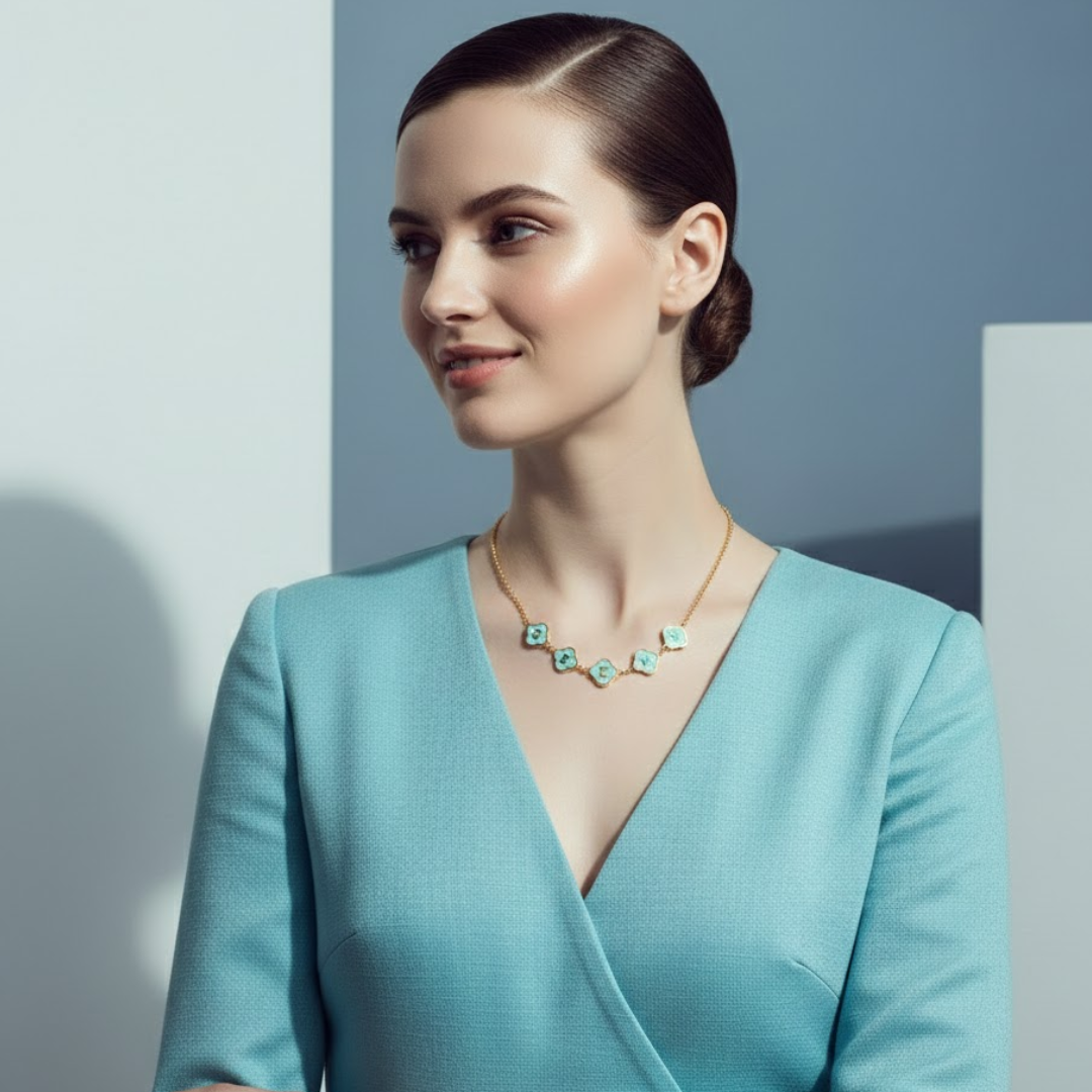 We believe luxury should be lived in, not stored in a box. This necklace is meticulously crafted from premium 18k gold-plated PVD stainless steel, ensuring an opulent, long-lasting shine that holds up against the rigours of daily life.