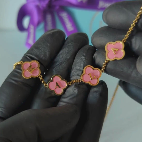 Jodie Clover Bracelet - Personalised Clover Name Bracelet, 18K Gold Plated Waterproof Clover Jewellery Christmas Gift
