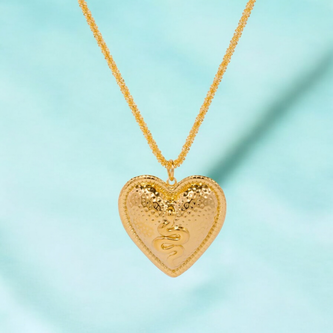 Jooelri London: Crafting moments that endure. Take on every adventure with our Corine Gold Plated Chunky Heart Snake Chain Necklace! This striking 18K gold plated necklace is crafted from stainless steel, promising long-lasting brilliance and unparalleled durability for everyday wear.